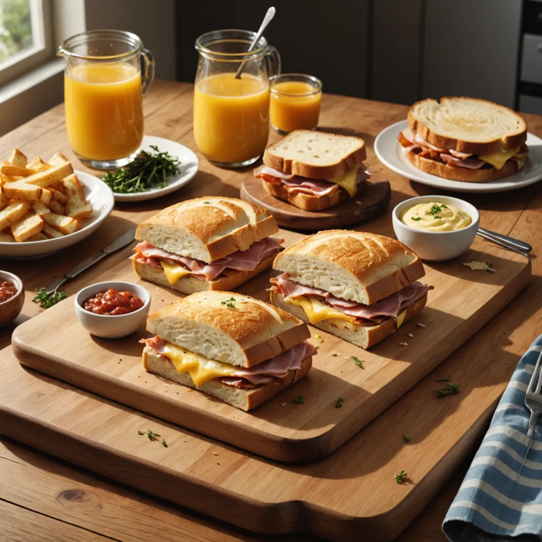 - Крок-месье — классический французский горячий бутерброд с ветчиной и сыром.